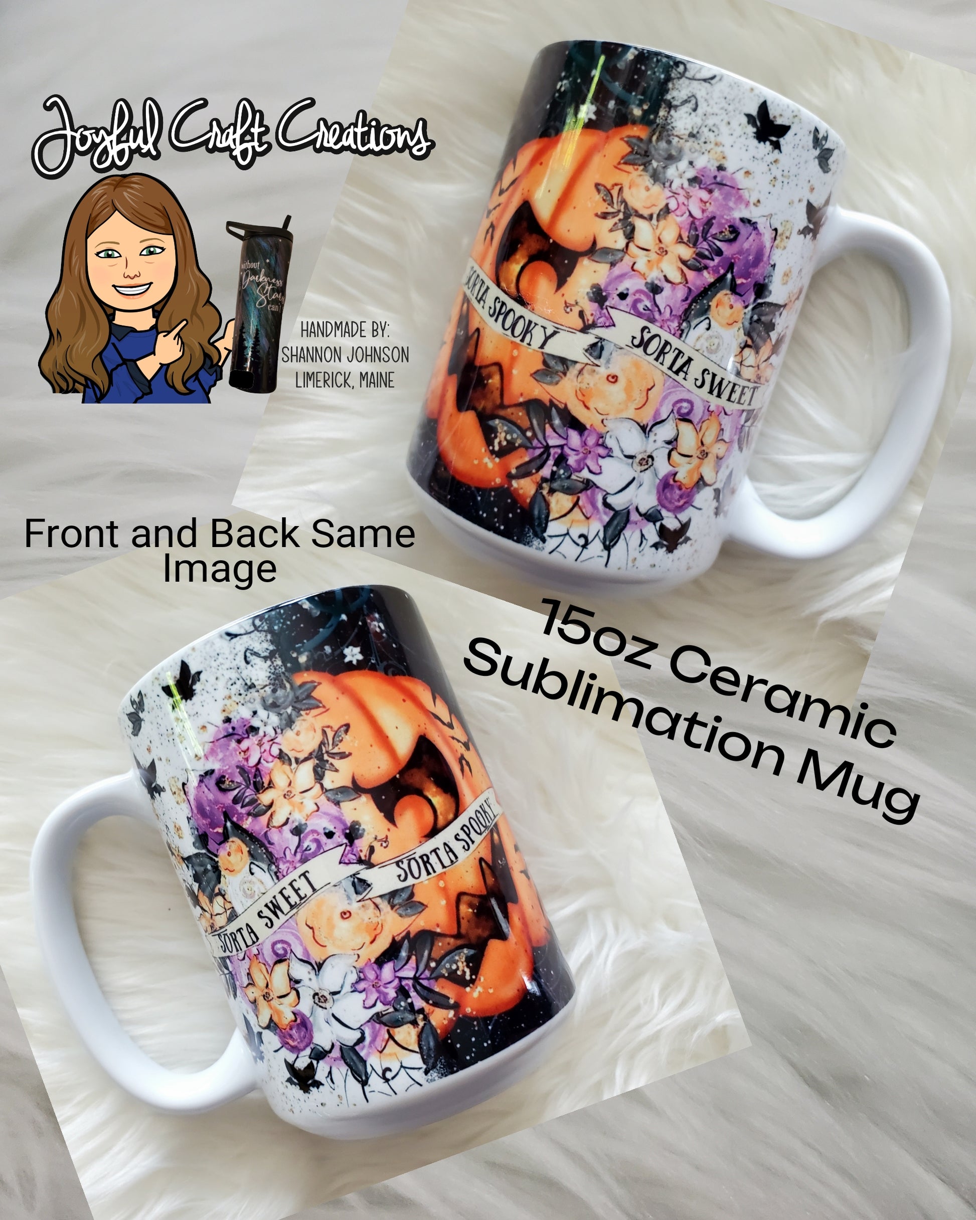 15 oz Ceramic Sublimation Mug - Sorta Spooky/Sorta Sweet