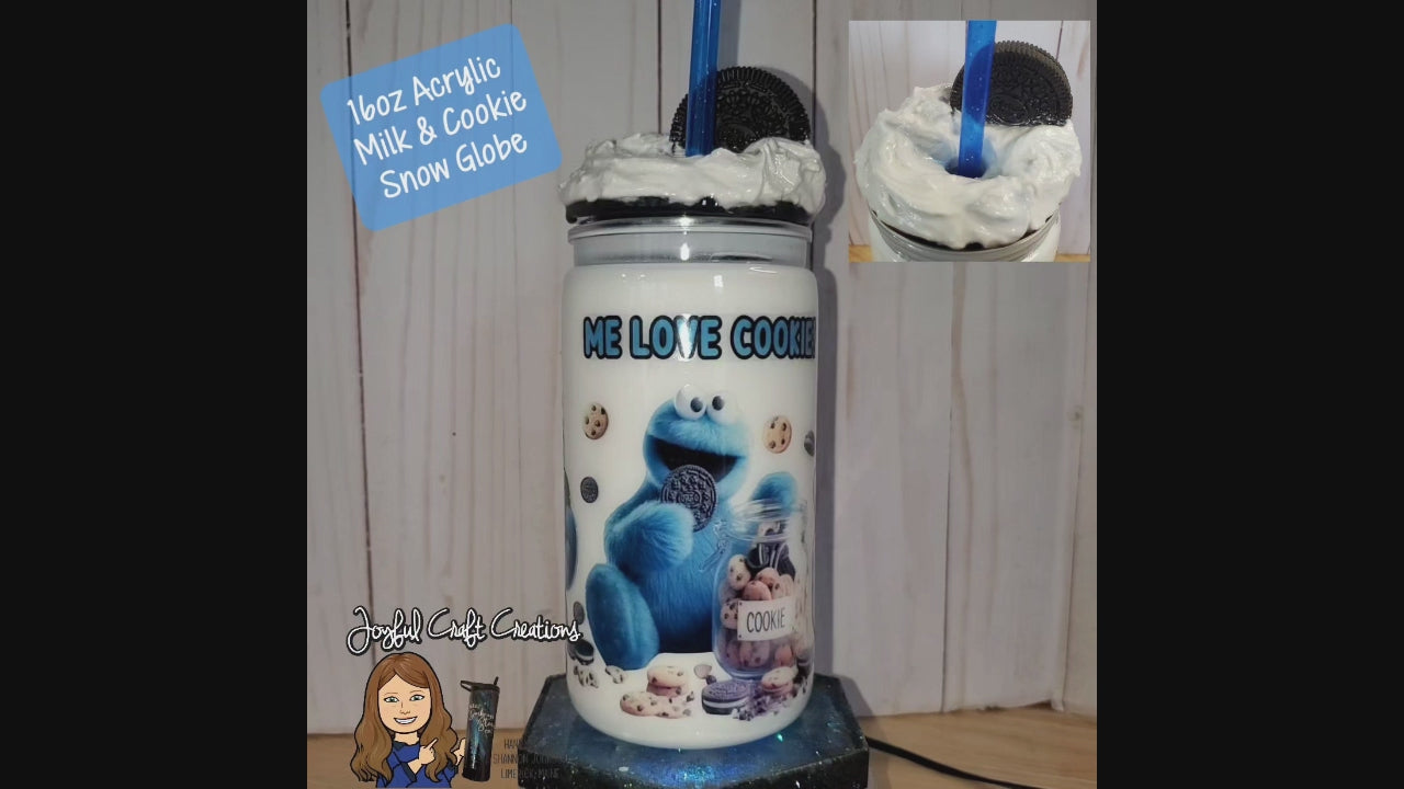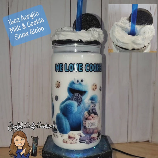 Who else loves milk and cookies? This adorable 16oz acrylic snow globe is the perfect accompaniment to your favorite cookies. It is made to look like milk along with a permanent lid topper with a cookie. Also comes with clear and blue straw shown in photo.