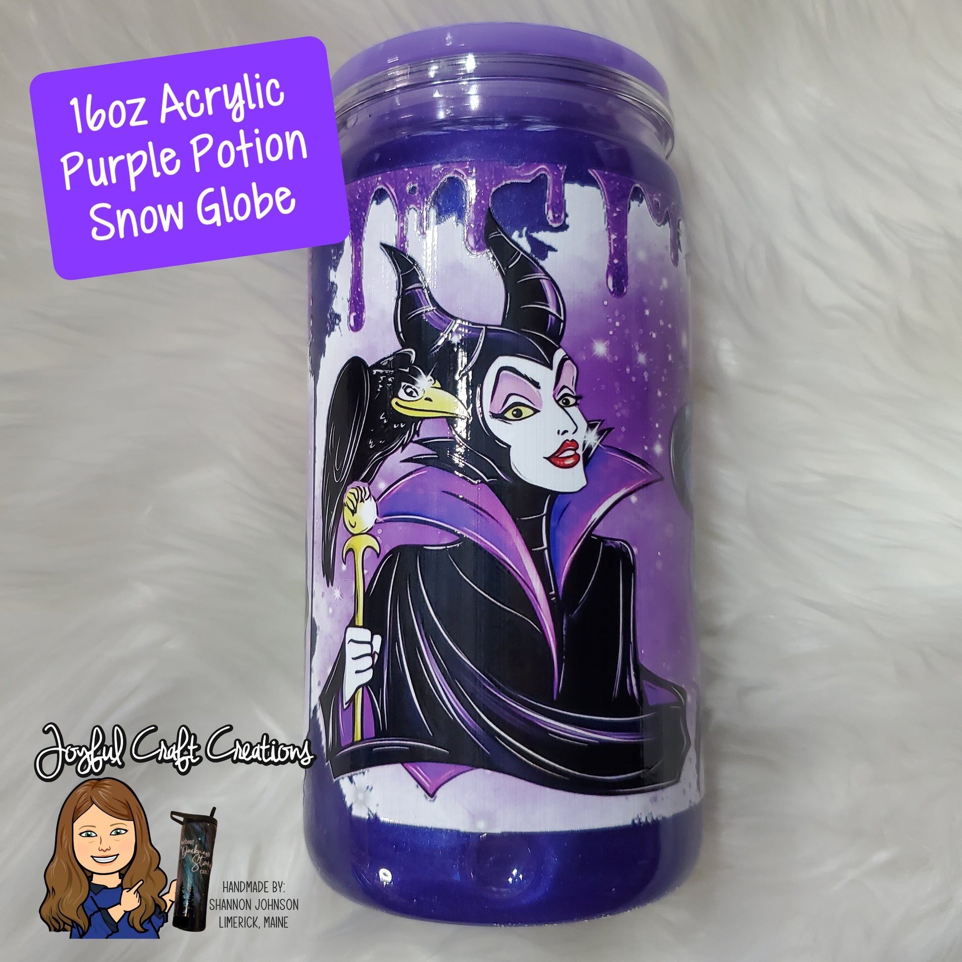 This Villain 16 oz acrylic snow globe tumbler is designed with a mystical purple potion color solution. Only 1 available.