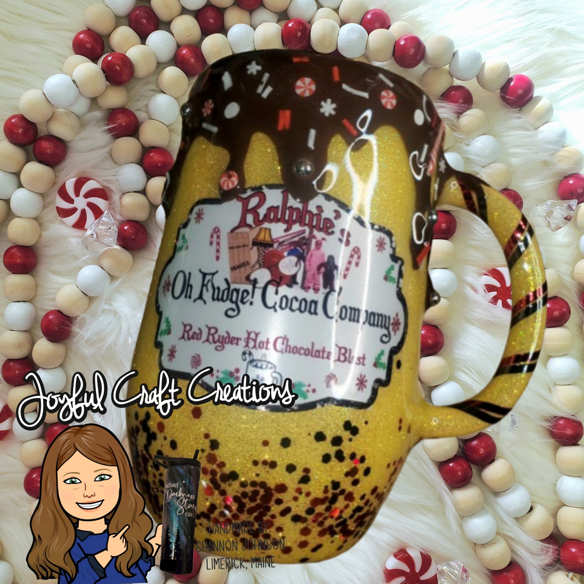 Welcome to Ralphie’s Oh Fudge! Cocoa Company, where the cocoa blasts are hot, the BB guns are loaded, and the fudge is...well, almost said. Inspired by the iconic holiday marathon movie A Christmas Story, this 16 oz stainless steel tumbler is a cheeky nod to every pink bunny suit, triple-dog dare, and Red Ryder wish.
