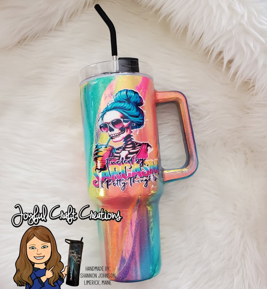 Each tumbler is hand made on a stainless-steel double walled tumbler base.