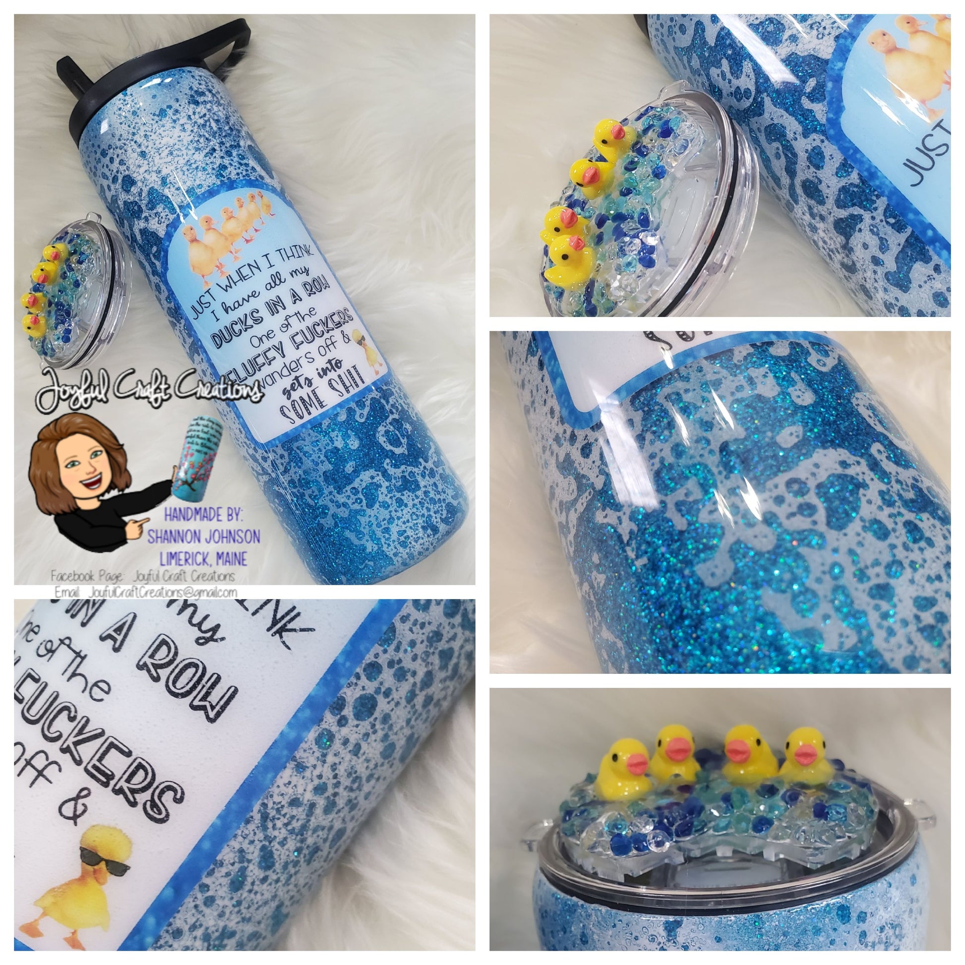 Cute sassy tumbler with coordinating magnetic lid of fake bubbles and ducks.