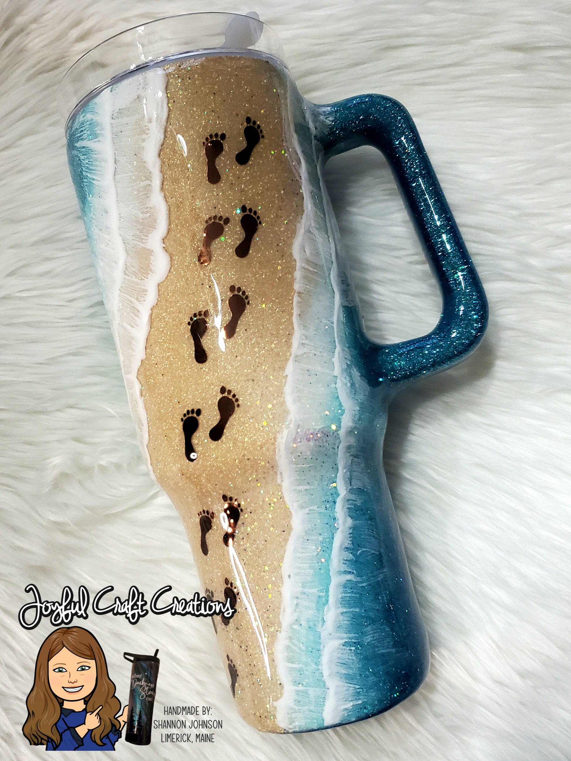 Enjoy your favorite drinks with the Footprints Beach Tumbler, featuring a serene design of footprints in the sand and gentle beach waves. This tumbler keeps beverages at the perfect temperature while reminding you of peaceful seaside moments. Durable and stylish, it’s ideal for daily use or as a thoughtful gift for beach lovers. Embrace relaxation wherever you go with this charming and practical tumbler.