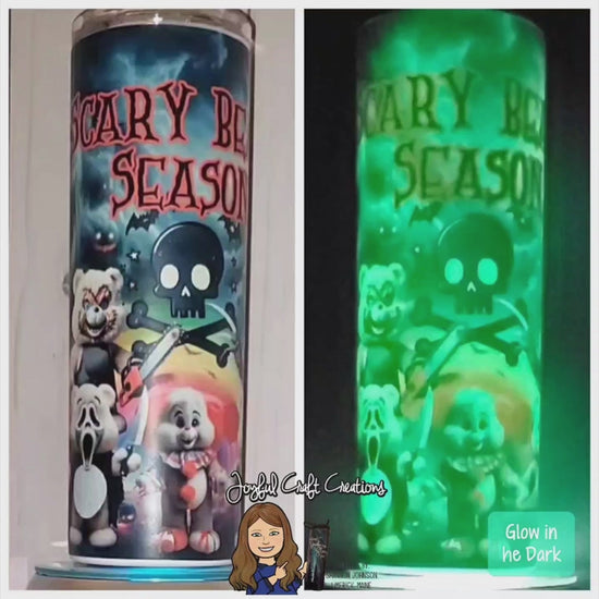 Experience a unique twist on nostalgia with this one-of-a-kind 20 oz stainless steel tumbler featuring Care Bears reimagined as iconic horror characters like Michael, Jason, Pennywise, Freddy, Chucky, Leatherface, and Ghostface. Its glow-in-the-dark sublimation design makes it a standout piece, perfect for fans who love a blend of cute and creepy. The stainless steel base keeps your hot drinks hot and cold drinks cold, making it both stylish and practical. Only one available—grab this exclusive collectible before it’s gone!
