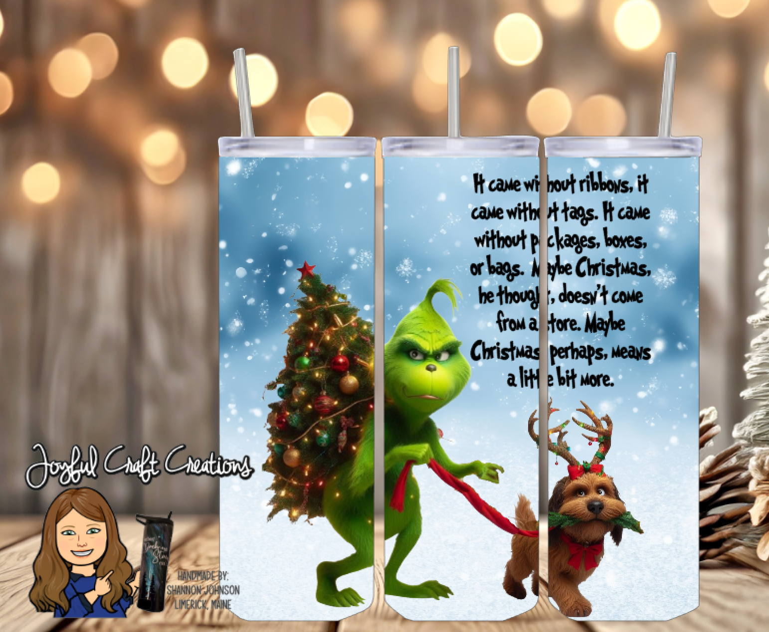 Featuring the famous quote from the movie "It came without ribbons, it came without tags.Ā It came without packages, boxes, or bags.Ā Maybe Christmas, he thought, doesnāt come from a store.Ā Maybe Christmas, perhaps, means a little bit more.ā A timeless reminder of what the season is truly about.