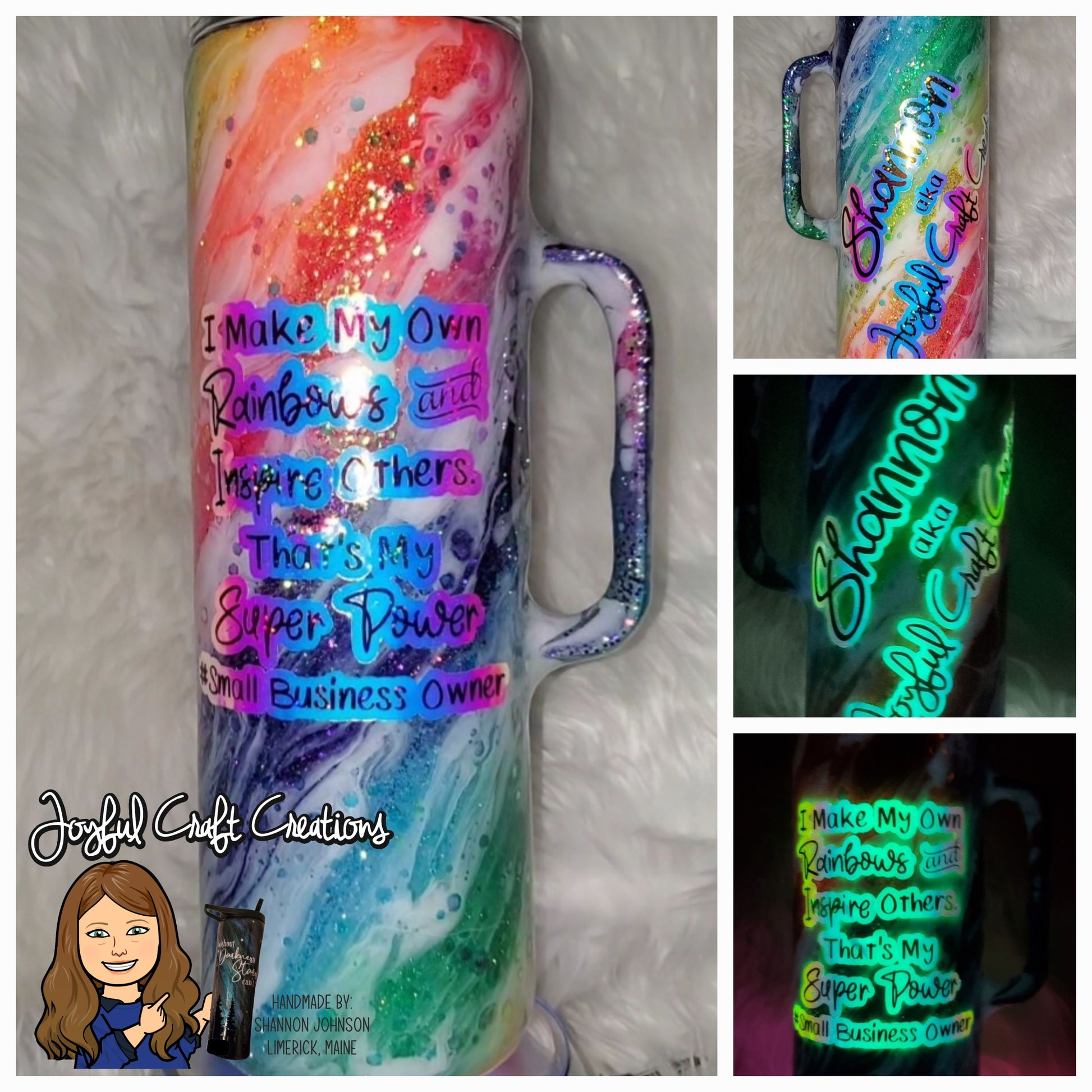 You can choose your primary 4 glitter colors you wish to have. I will use white or a coordinating color of your choice for the streaks for the "milky way" over the glitter. You also can choose if you wish to have the white streaks glow in the dark.