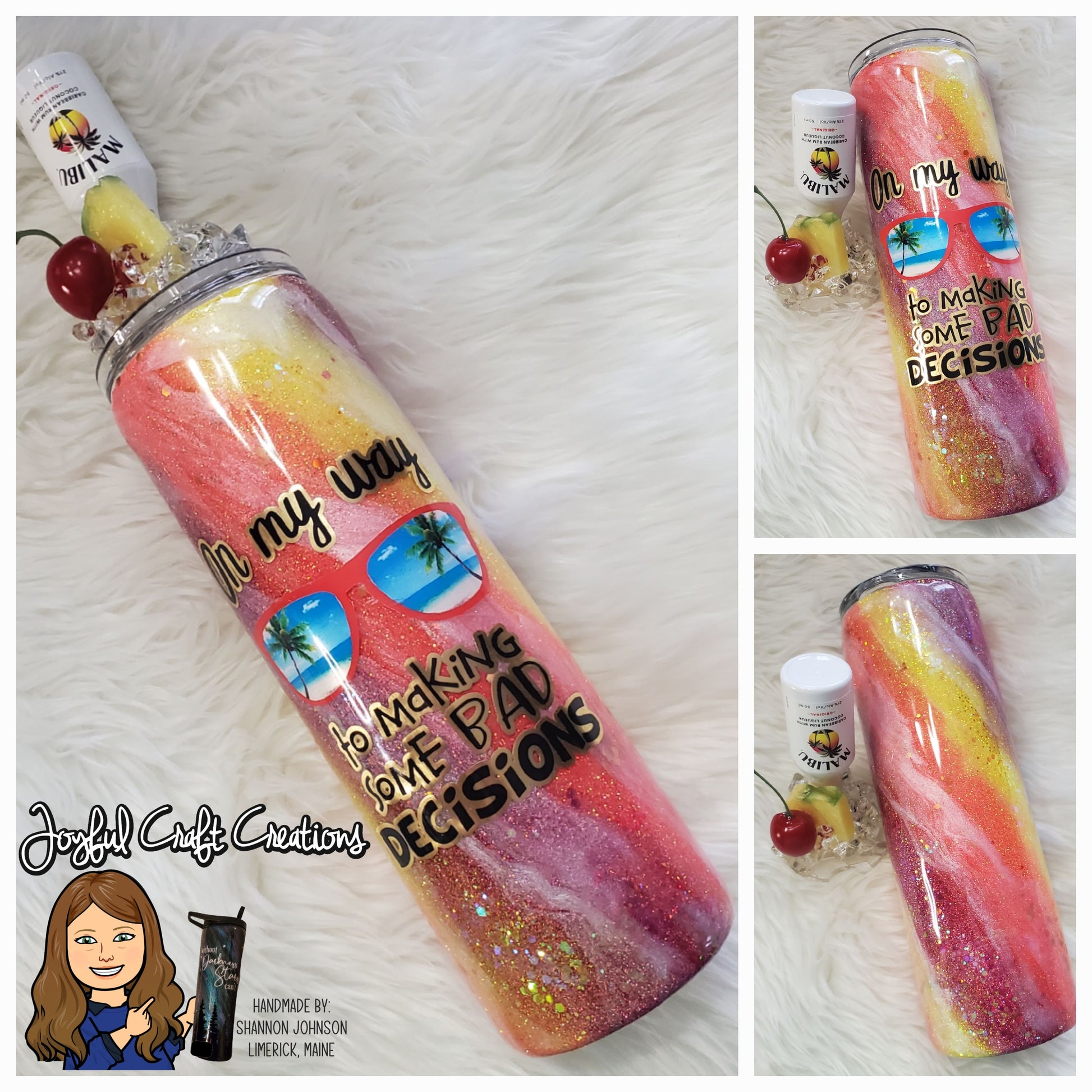 Each tumbler is hand made on a stainless-steel double walled tumbler base. Perfect tumbler for the summer heat! Comes with magnetic coordinating lid topper of tropic embellishments with fake ice. (Photos are of prior orders)