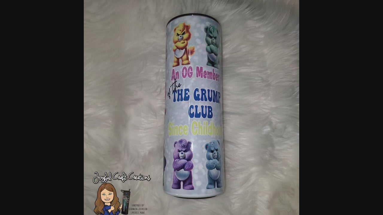 Featuring a moody lineup of vintage Care Bears in peak grump mode, this 20 oz sublimation tumbler is a throwback to the days when cartoons had attitude and your snack came with a side of sarcasm. Whether you're sipping coffee, tea, or something stronger (we won't tell), this guilt-free vessel is here to validate your vibe.