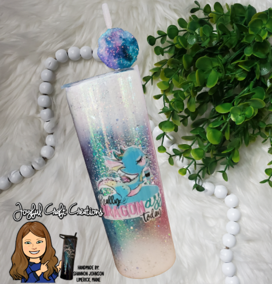 This tumbler offers a comical snarky attitude to your daily routine. Boasts an adorable dragon with a snarky attitude.