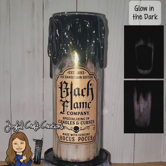 #HocusPocusVibes #BlackFlameCandle #SandersonSisters #GlowInTheDarkMagic #JoyfulCraftCreations #AsTheTumblersTurn #LimitedEditionSpells