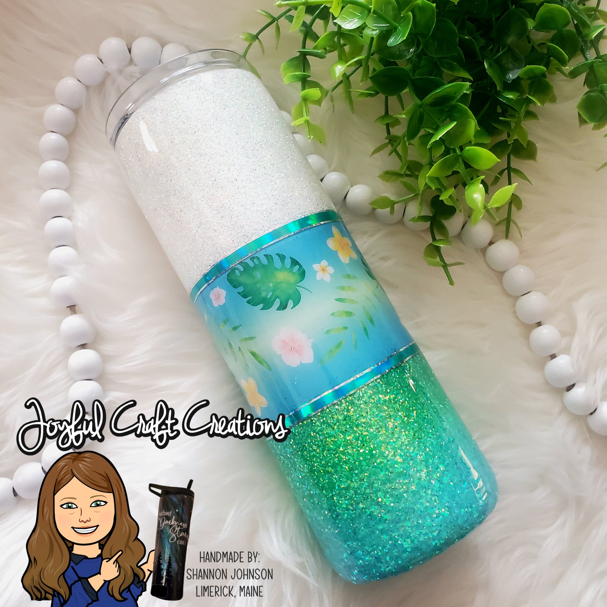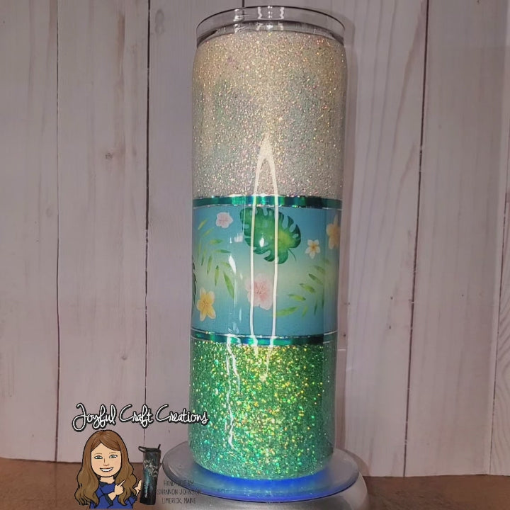 Beautifully serene 20 oz sectional tropical images and sparkly glitter tumbler is available. Don't miss out!