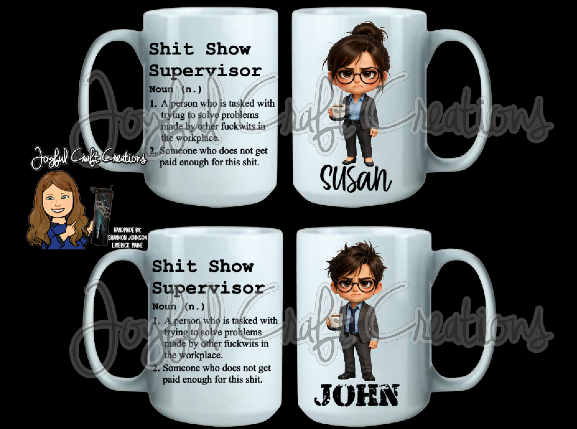 Personalized Shit Show Supervisor - Male or Female 15 oz Ceramic Sublimation